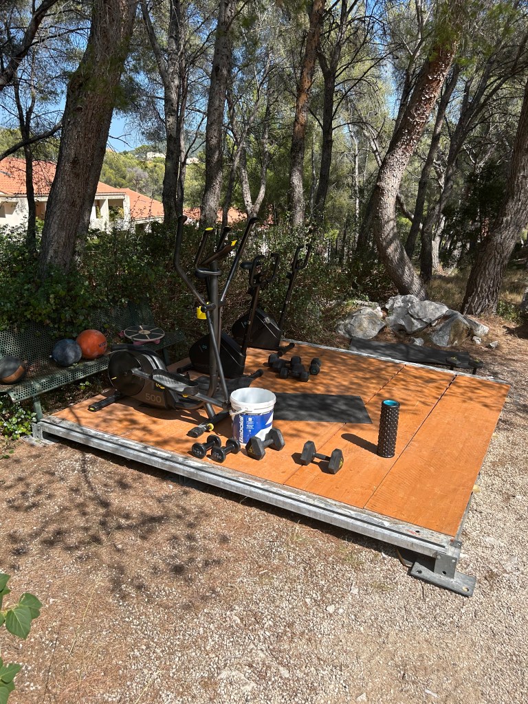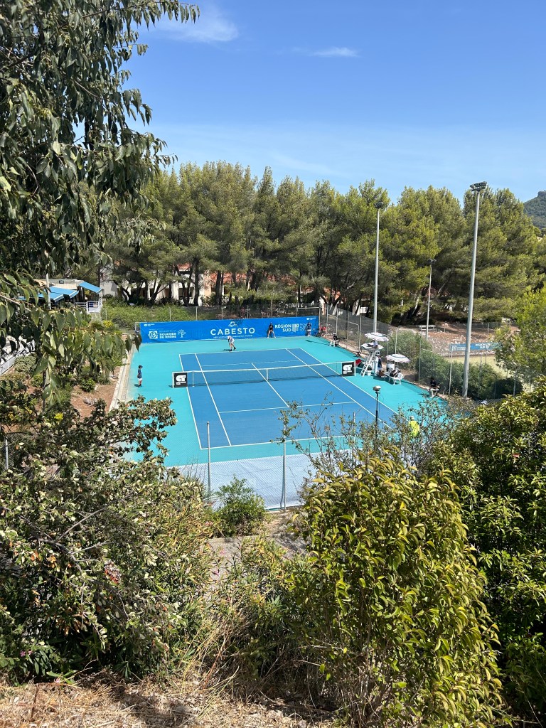The club was situated on a hillside in Cassis, about a 20 minute walk from the beach, and it’s one of the most picturesque clubs I’ve ever played at. There were 5 hard courts, all parked on different heights on the hill, as well as 3 astro courts and a “gym”.