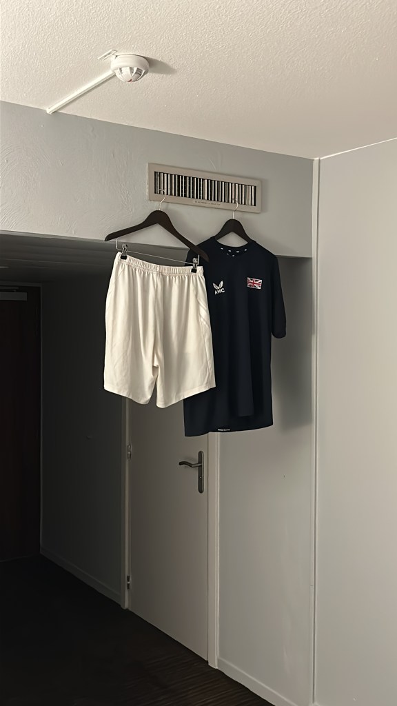 For context, I sweat a lot when I play and so wristbands are an essential item of clothing that I need to wear for every single match, whether it’s indoors or outdoors. If I don’t, sweat will drip down my arm onto my grips and I won’t be able to hold the racket. Unfortunately for me, all of my wristbands were sat at Charles de Gaulle airport, so whenever I sat down for a drink during my practice, I was texting my mum and dad asking to see if they could find a local sports or tennis shop that might sell some wristbands and some kit I could wear for my match.